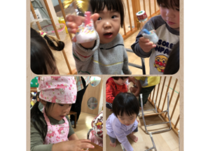 「ぺったん!」と言いながらスタンプをし、それぞれ素敵な作品が完成しました💕