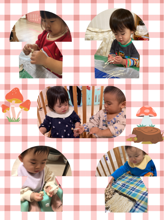 「きのこ」の曲を流すと、『き・き・きのこ♫』と歌を歌いながらのりのりできのこに触れて楽しむ子もいました♪