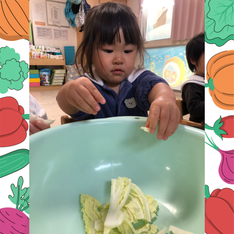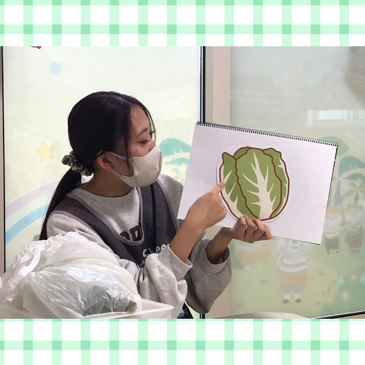 今月の食育では冬の定番野菜である白菜についてお話を聞きました🥬