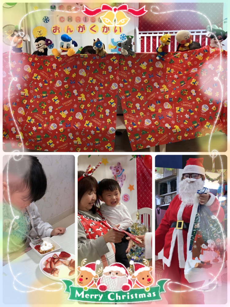驚いて泣いてしまう子もいましたが、サンタさんが玩具のプレゼントを持ってきてくれたのでとても喜んでいました🎁