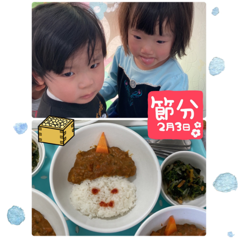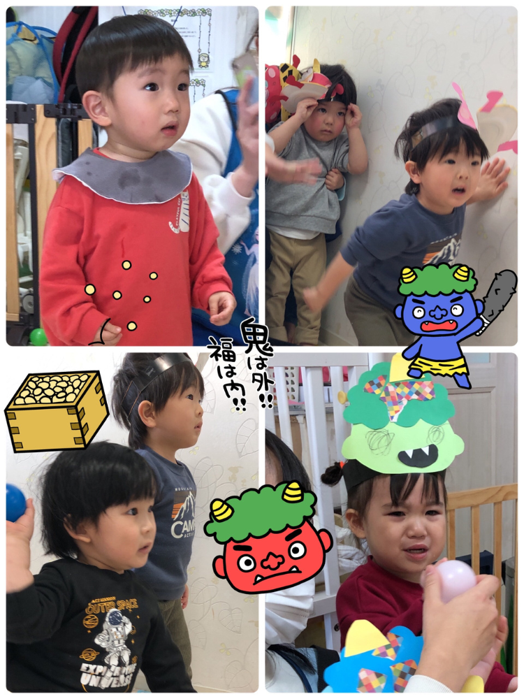 泣いてしまう子😢もいましたが、勇気を持って豆まきをして、頑張って鬼退治をしてくれました🤾🫘